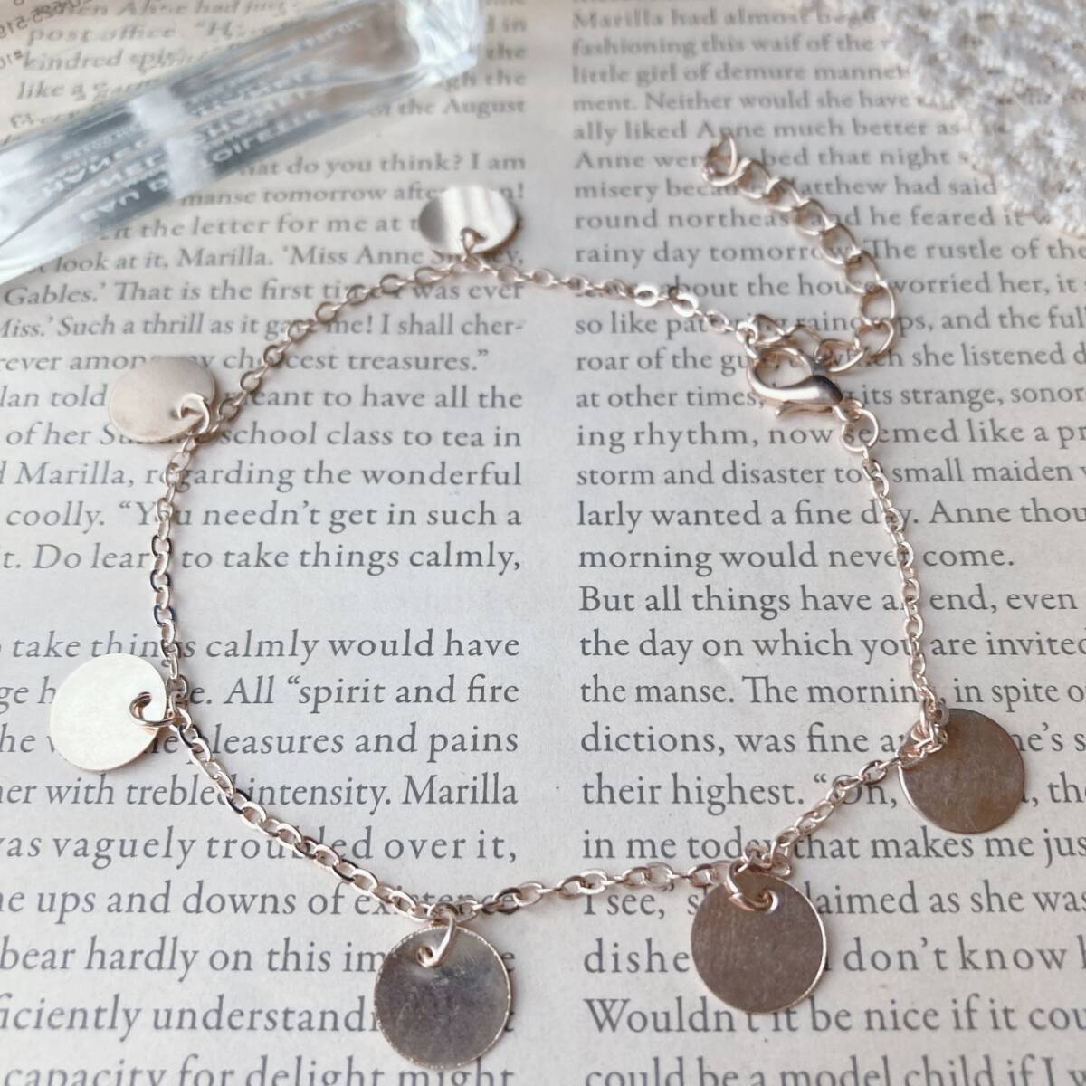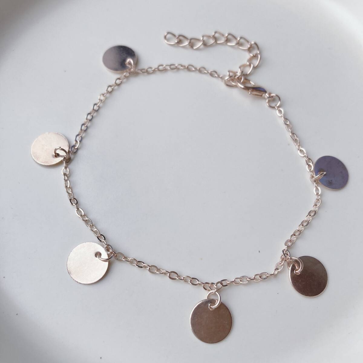 ブレスレット ピンクゴールド ラウンド ディスク ミニコイン メタリック アンクレット☆Vintage jewelry accessories R0066