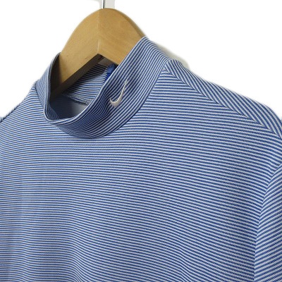 ナイキゴルフ NIKE GOLF カットソー ハイネック ボーダー スウッシュ ワンポイント L 国内正規 青 ブルー レディース