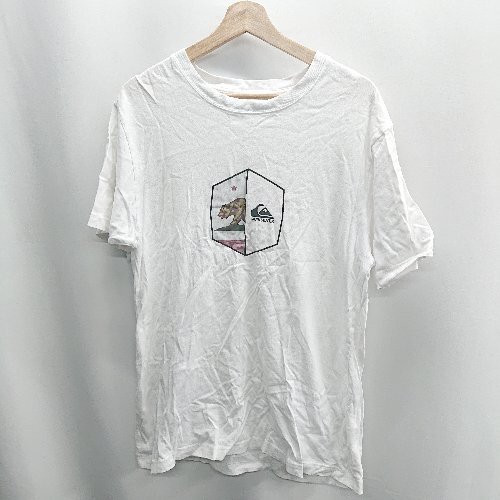 ◇ ⊂ Quiksilver クイックシルバー ロゴプリント くま 半袖 Tシャツ サイズL ホワイト系 レディース メンズ E