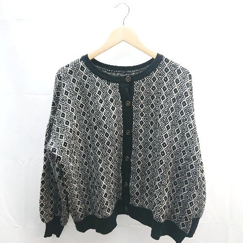 ◇ BEAMS HEART ビームス ハート クルーネック 総柄 長袖 カーディガン ニット 表記なし ブラック系 レディース E