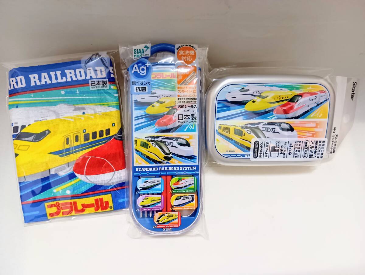 | スケーター(Skater)の新品未開封の子供用キャラクターランチボックスセットです。 アルミ弁当箱・トリオセット・お弁当バッグの3点セット。 タカラトミーのプラレール 新幹線N700系・ドクターイエロー・こまちなどのデザインです。 カラーは青色・ブルー系。 同シリーズでのセット品ですので、こどもの入園準備や入園入学セットとしてプレゼントにおすすめです。 お誕生日やイベントのギフトに。 幼稚園・保育園の運動会や遠足の準備にも。 その他のキャラクター370mlアルミお弁当箱3点セットも出品中です♪ プラレールのお弁当箱セット♪ タカラトミーのお弁当箱セット♪ 男の子におすすめのお弁当箱セット♪ <セット内容> 〔シリーズ名:プラレール24〕 ①【アルミ弁当箱 1段 370ml/ALB5NV】 アルミ製。中子付きでおかずとご飯を分けて盛れる。 お弁当箱半分に入るご飯の量はお茶碗約200ml約1杯分。 保温庫対応。ゴムベルト付。名前シール付。 ※お弁当箱の表面に微小なキズがある場合がございますが、製造上ついてしまうもので不良品ではございません。 ●容量:370ml(中子1個付き) ●商品サイズ(約):横134×奥行97×高さ42mm ●日本製 ●JAN:4973307662133 ②【抗菌トリオセット/TACC2AG】 スライド式のお箸・フォーク・スプーンとケースのセット。 食洗機対応。名前シール付。 ●商品サイズ(約):ケース198×76×17mm、箸16.5cm、スプーン・フォーク13cm ●重さ:150g ●日本製 ●JAN:4973307658235 ③【ランチ巾着/KB7】 巾着袋のお弁当入れ。 ●商品サイズ(約):290×165×120mm ●品質表示:綿100% ●日本製 ●JAN:4973307658303 ==== 参考価格:定価5,445円(税込合計、送料別) その他注意事項: ・バラ売りには対応していません。即購入OKです。 ・送料込みの出品ですのでお値下げ交渉はご遠慮ください m(_ _)m ・すり替え防止のため不具合以外の理由での返品は受け付けておりません。 ・上記ご理解いただける方のみ購入をお願いします。 Plarail Shinkansen Japanese Aluminum Lunch Bento Box Set with Bag for Toddlers Kids Boys キャラクターお弁当箱セット出品中♪ |