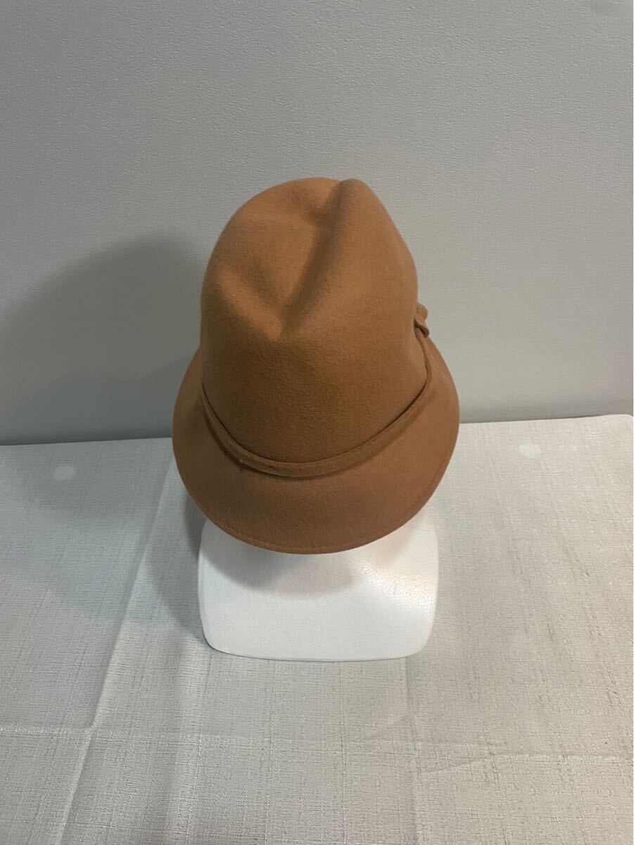 未使用に近い極美品ハット帽子メンズレディースリボン茶系リボン茶系ウール100%イタリア製