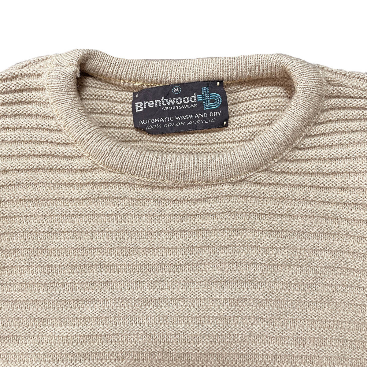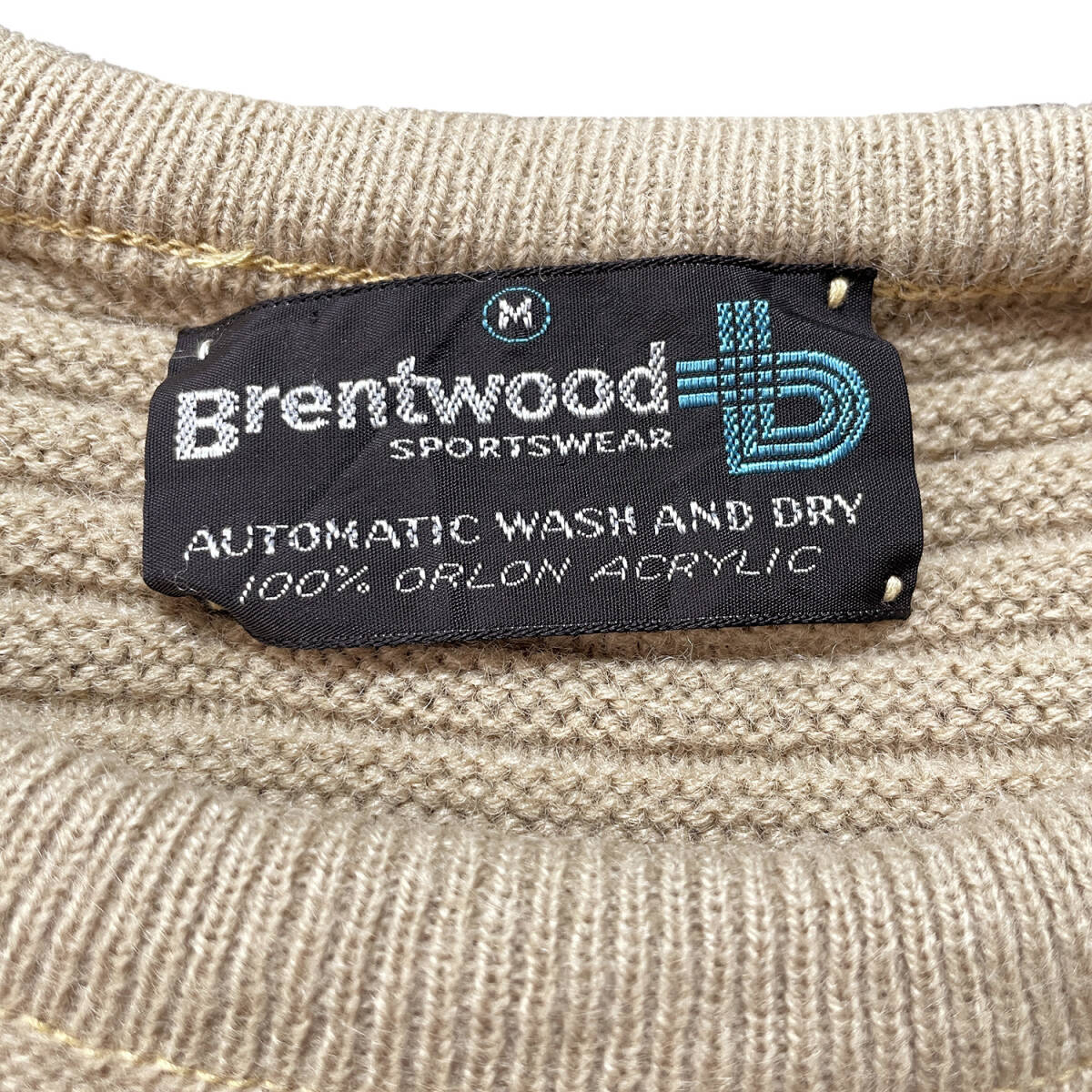 USA 古着 70S 80S Brentwood ブレントウッド ヴィンテージ アクリルニット セーター デザインニット メンズM ベージュ 中古 BJ0723