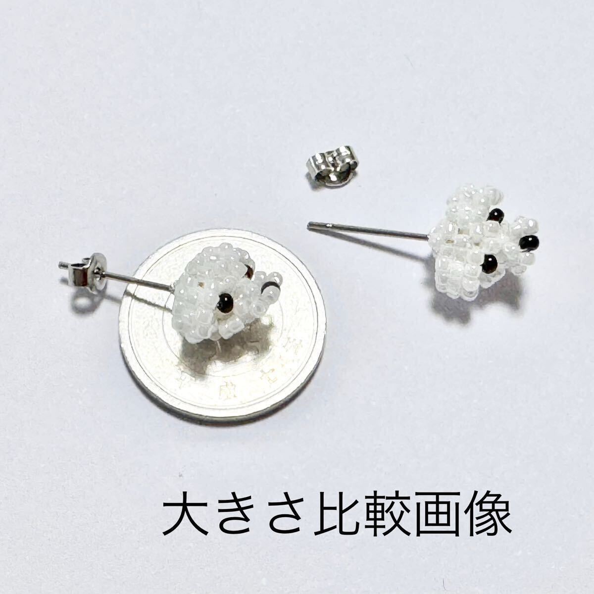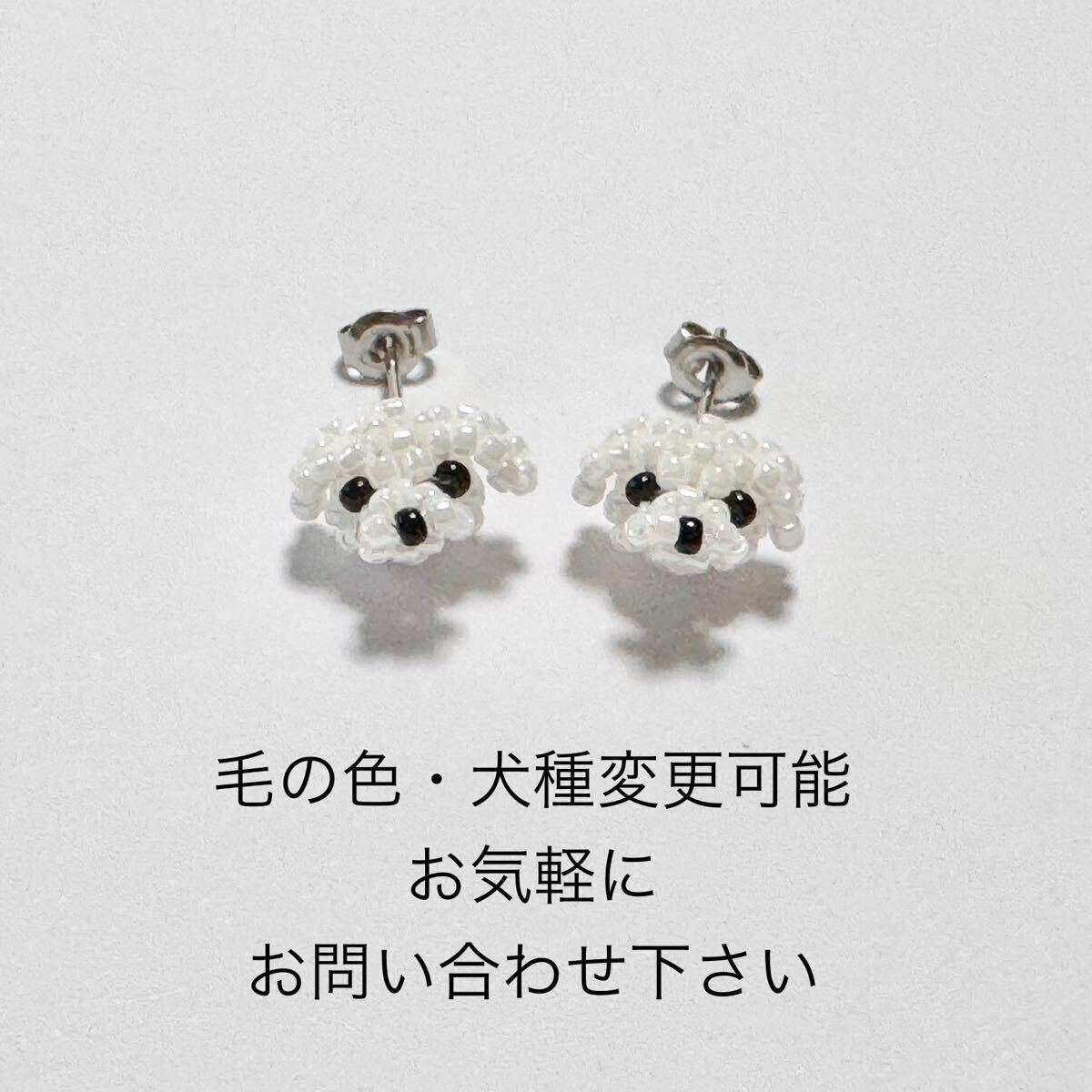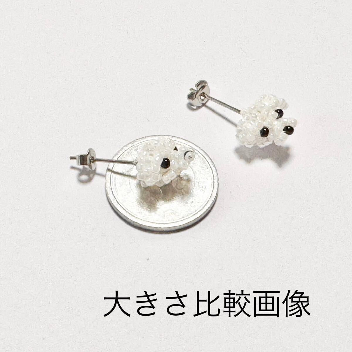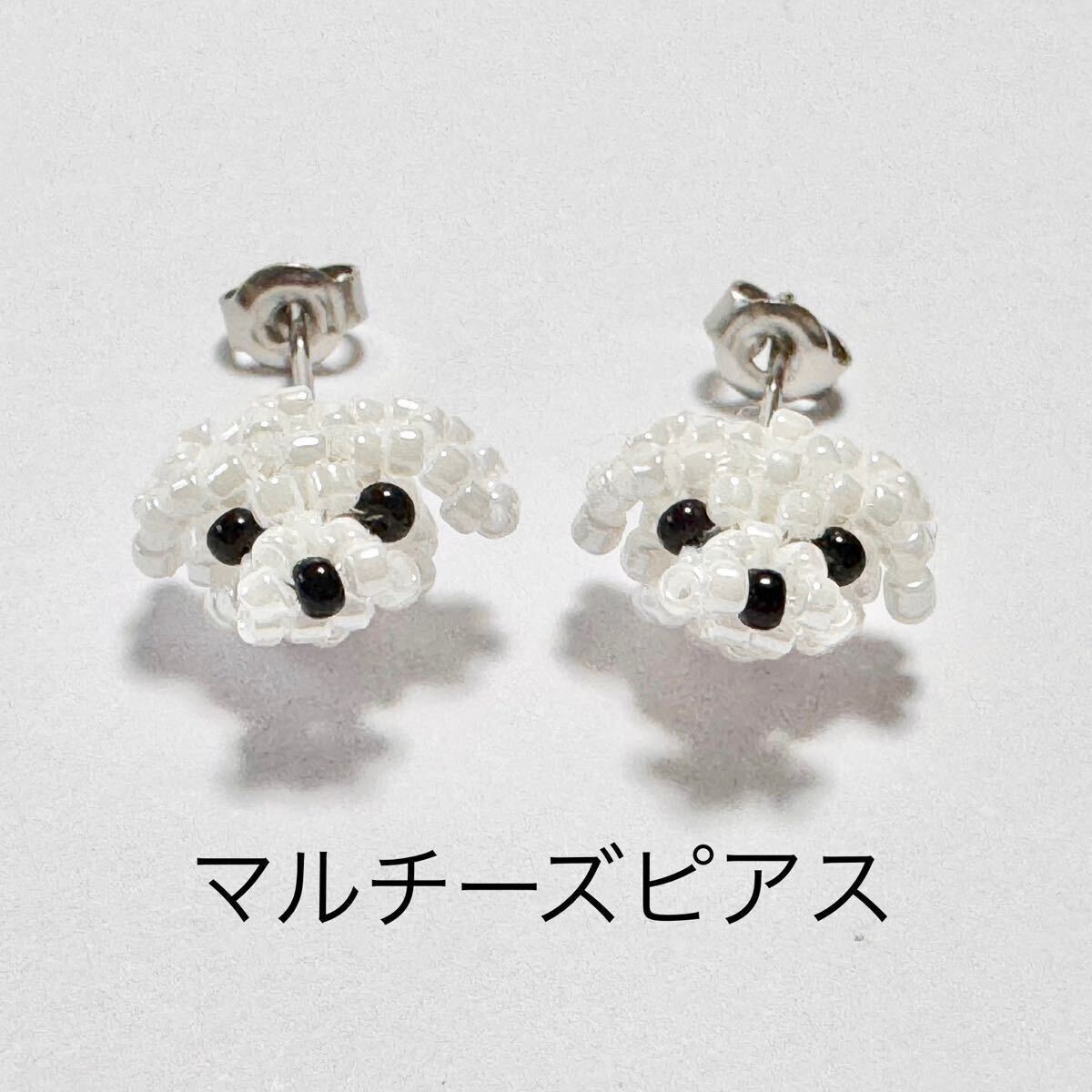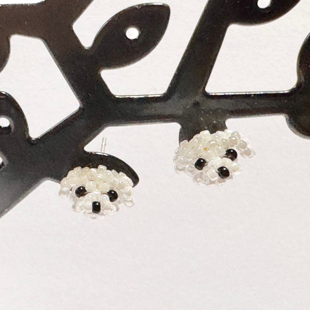 ビーズで編んだマルチーズちゃんお顔のピアス