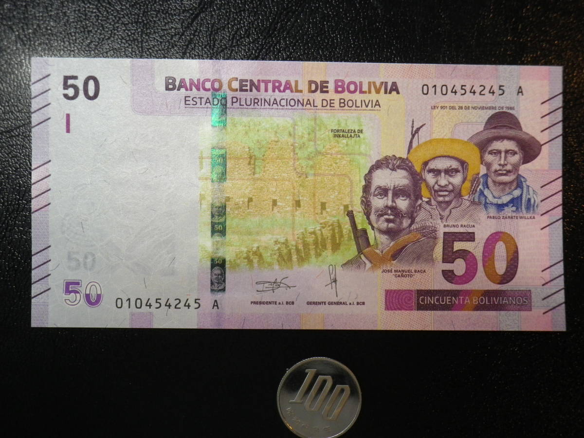 ボリビア 2018年 A券 中額面 50Bolivianos 未使用 p-250