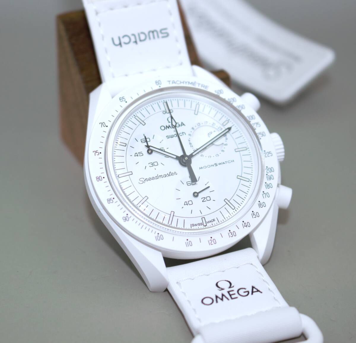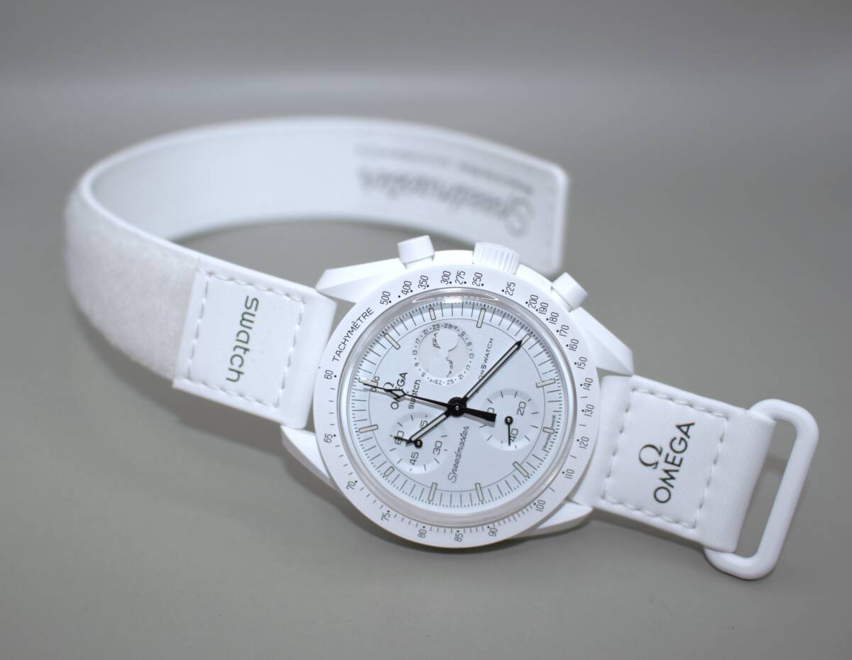 ☆時計☆1円~☆OMEGA X Swatch☆SO33W700☆ミッショントゥザムーンフェイズ フルムーン クォーツ BK文字盤 メンズ ☆稼動品☆『VRW-490』