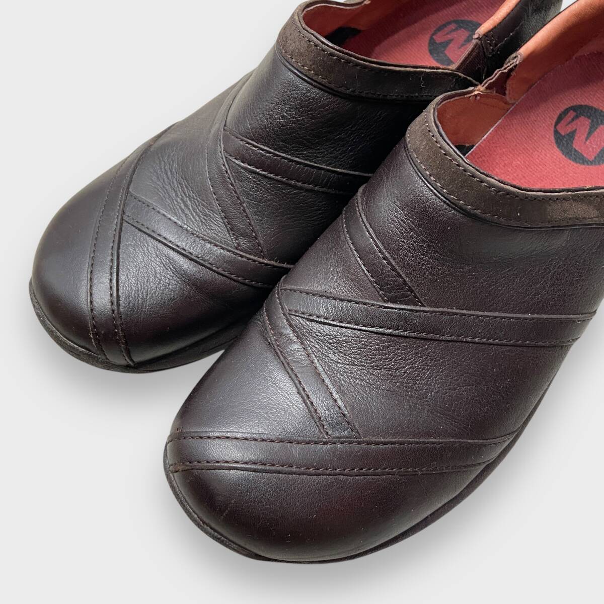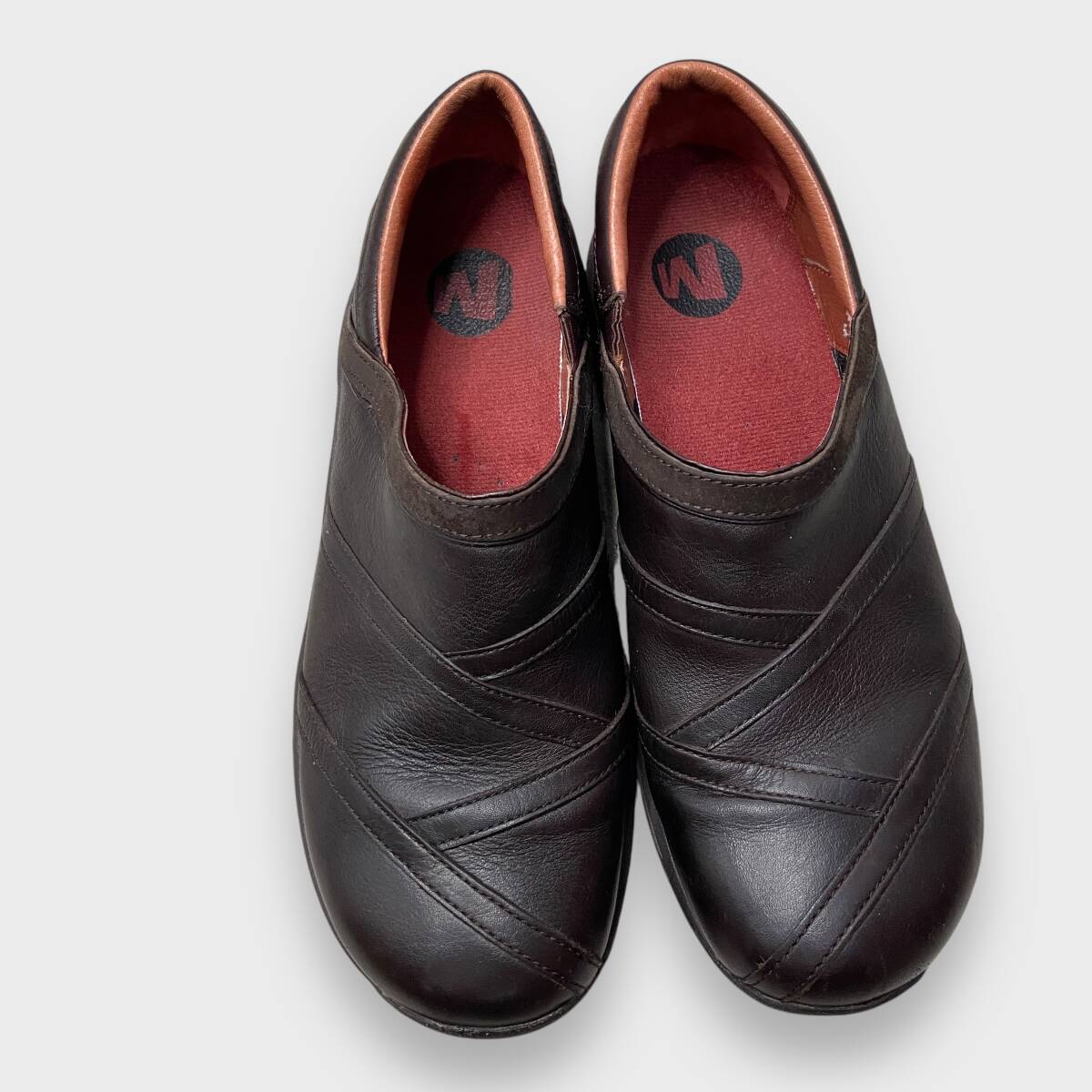 送料無料☆☆MERRELL☆メレル☆レザースリッポン☆コンフォートシューズ☆ブラウン☆レディースUS9.5☆26.5cm☆J24M