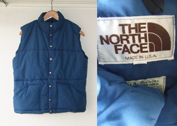 S/茶タグ★ザ・ノースフェイス★ダウンベスト ビンテージthe north face70s紺ネイビーusaブルーvintageアメリカ製アメカジ90s