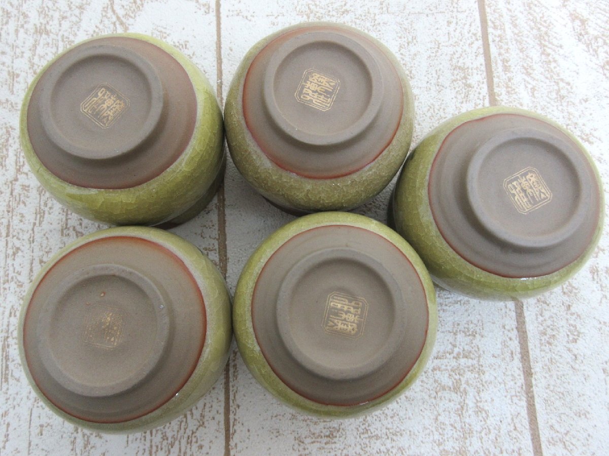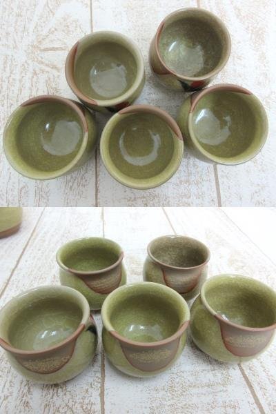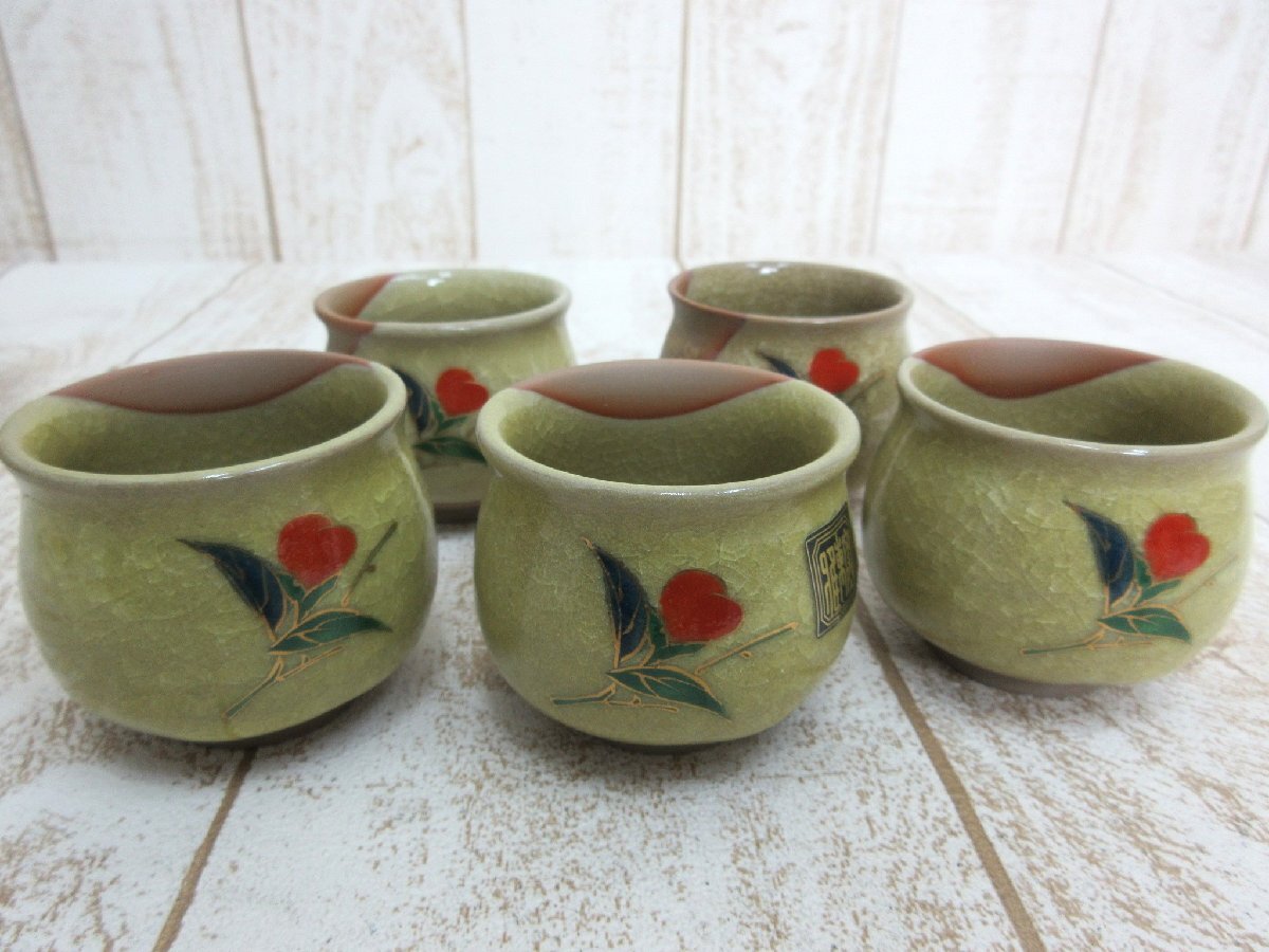 陶彩 亀甲花紋 酒器揃 徳利2客 お猪口5客 酒器 ぐい呑み 中古/USED