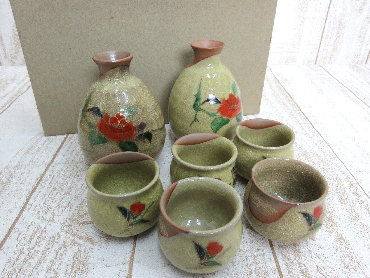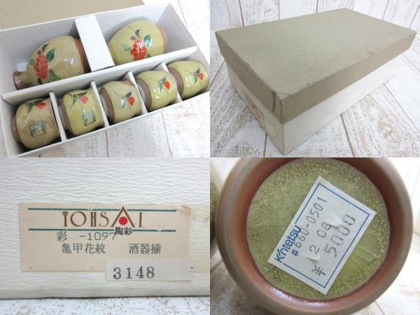 陶彩 亀甲花紋 酒器揃 徳利2客 お猪口5客 酒器 中古/USED
