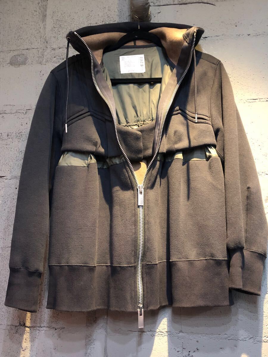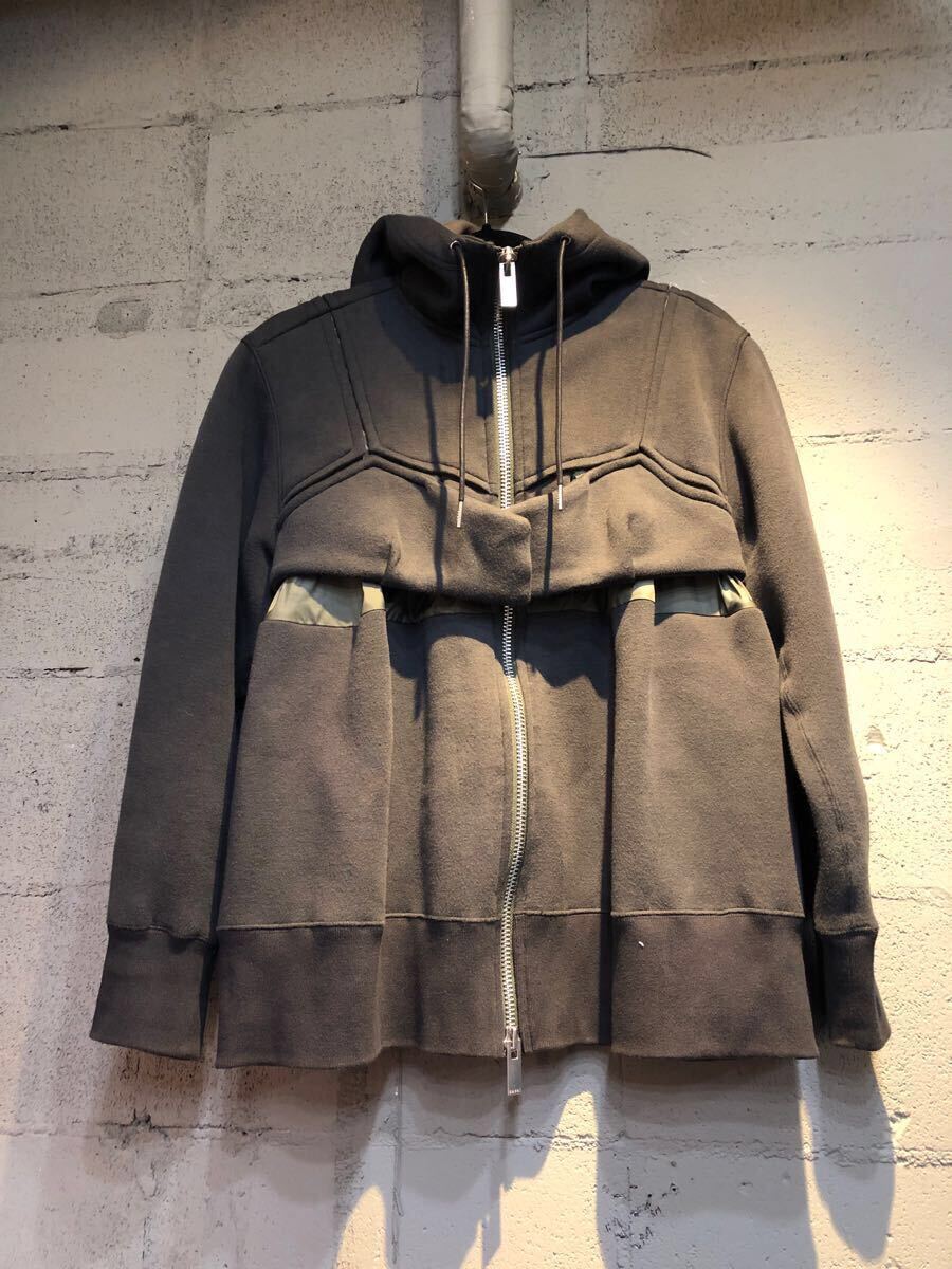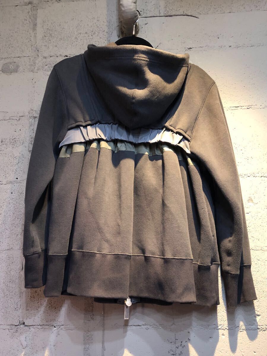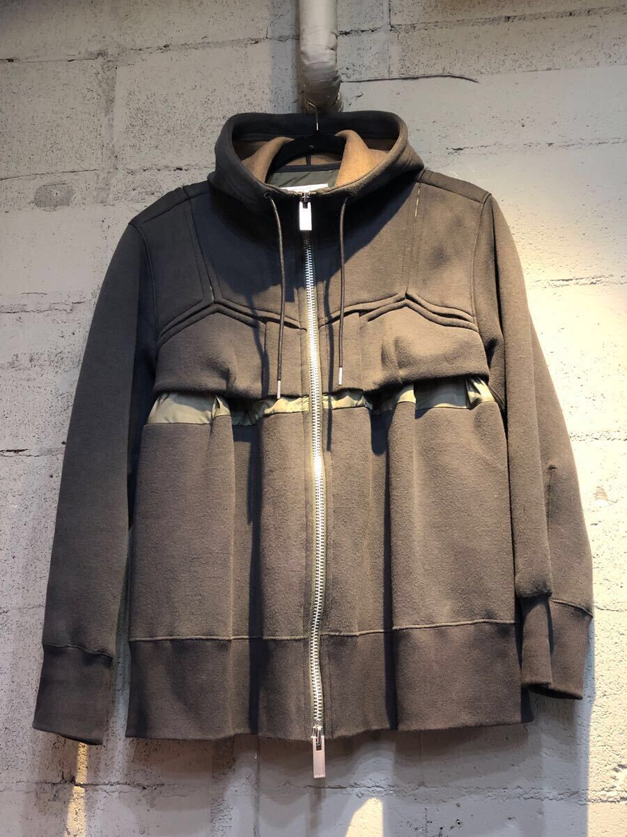 sacai サカイ スポンジスウェット×ナイロンツイル フーディー CHARCOAL GRAY size2 タグ付