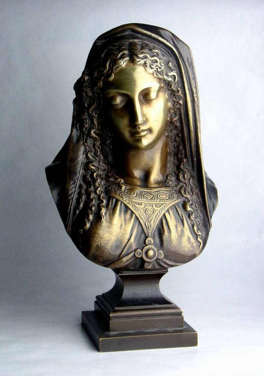 逸品 19世紀フランス 彫刻家 Desire Pierre Louis Marie作 聖母マリアの胸像 若きマリア像 アンティーク 聖像 宗教美術 ブロンズ真鍮合金