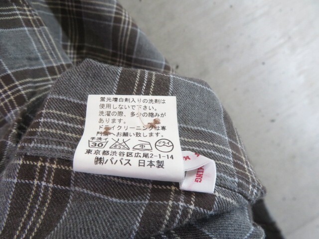 005c530◆良品です◆日本製◆Papas パパス 長袖チェックネルシャツ L/ジャケット/ブルゾン/スウェットトレーナー/ニットセーター/ゴルフ