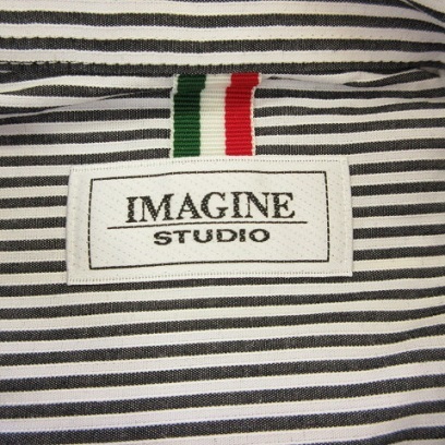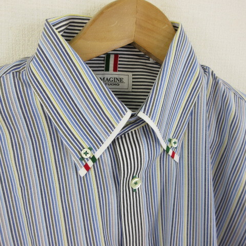 IMAGINE STUDIO ボタンダウンシャツ ワイシャツ 長袖 ストライプ 青 L *T130 メンズ