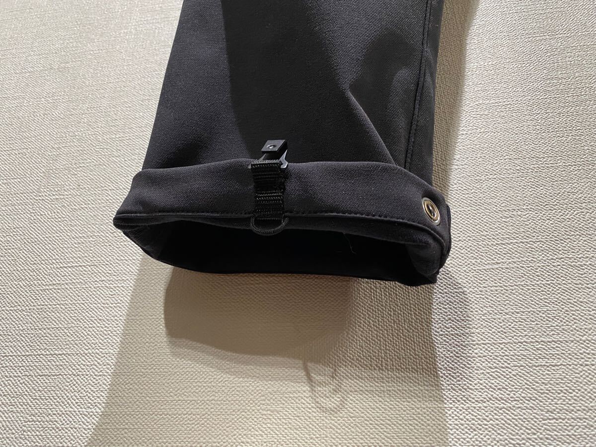 太ももサイド部分にファスナー開閉のベンチレーション仕様/裾にブーツフック・ハトメ付き/テーパードシルエット