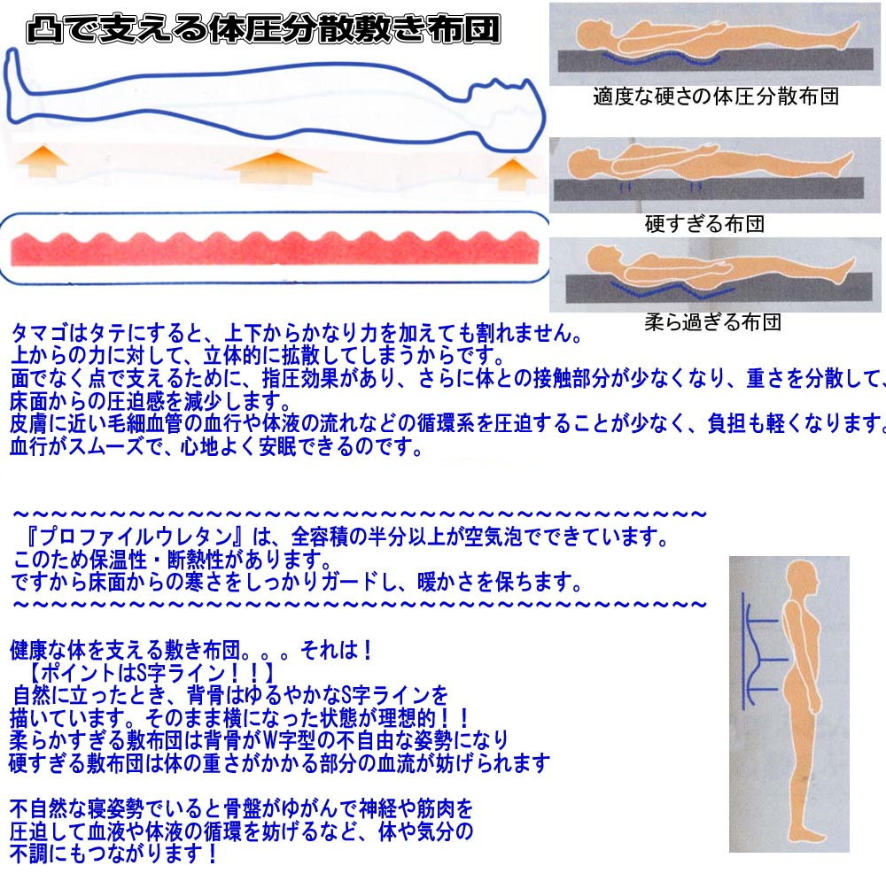 【体圧分散敷布団】(厚さ:厚め 硬さ:しっかり目 重さ:軽量 へたりが少ない)