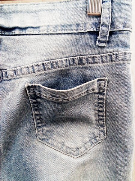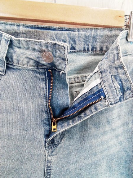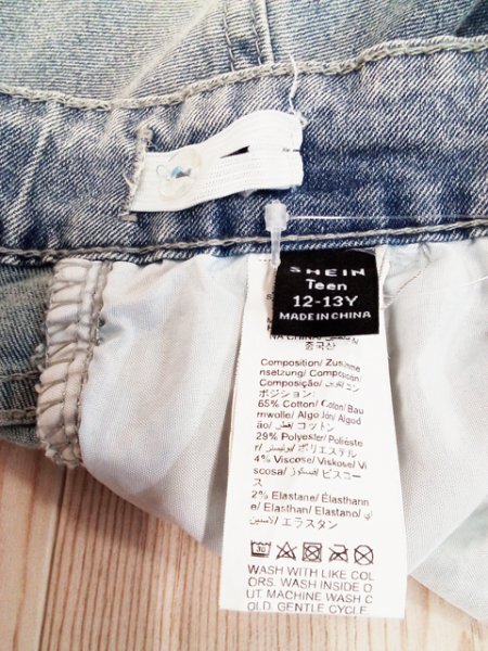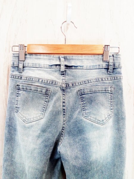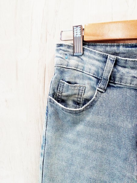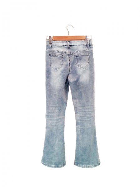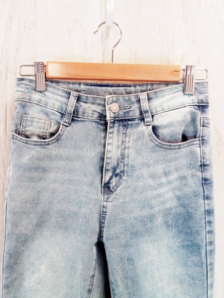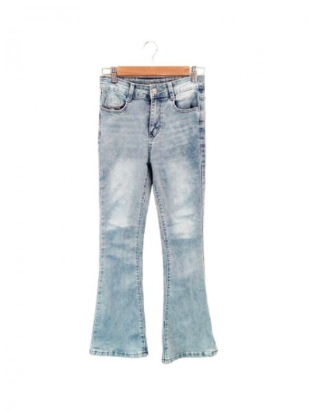KU1275 ○送料無料 古着 キッズ デニム パンツ 12-13Y 150cm相当 ライトブルー ウォッシュド加工 ウエストゴム ブーツカット 軽量 伸縮性