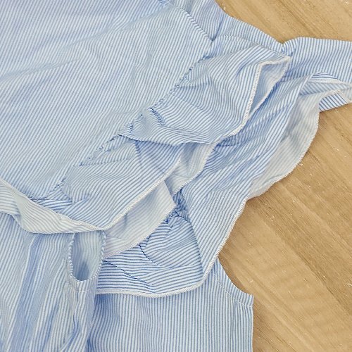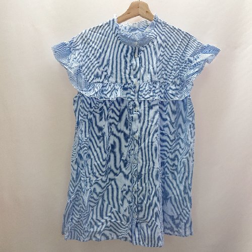 ◇ ⊂ LOWRYS FARM ローリーズファーム ストライプ ノースリーブシャツ サイズF ブルー系 レディース E