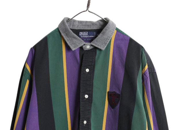 | 商品名 | 90s ポロ ラルフローレン プルオーバー ストライプ 長袖 シャツ メンズ XXL 90年代 コットン ボックス ワンポイント ワッペン マルチカラー |