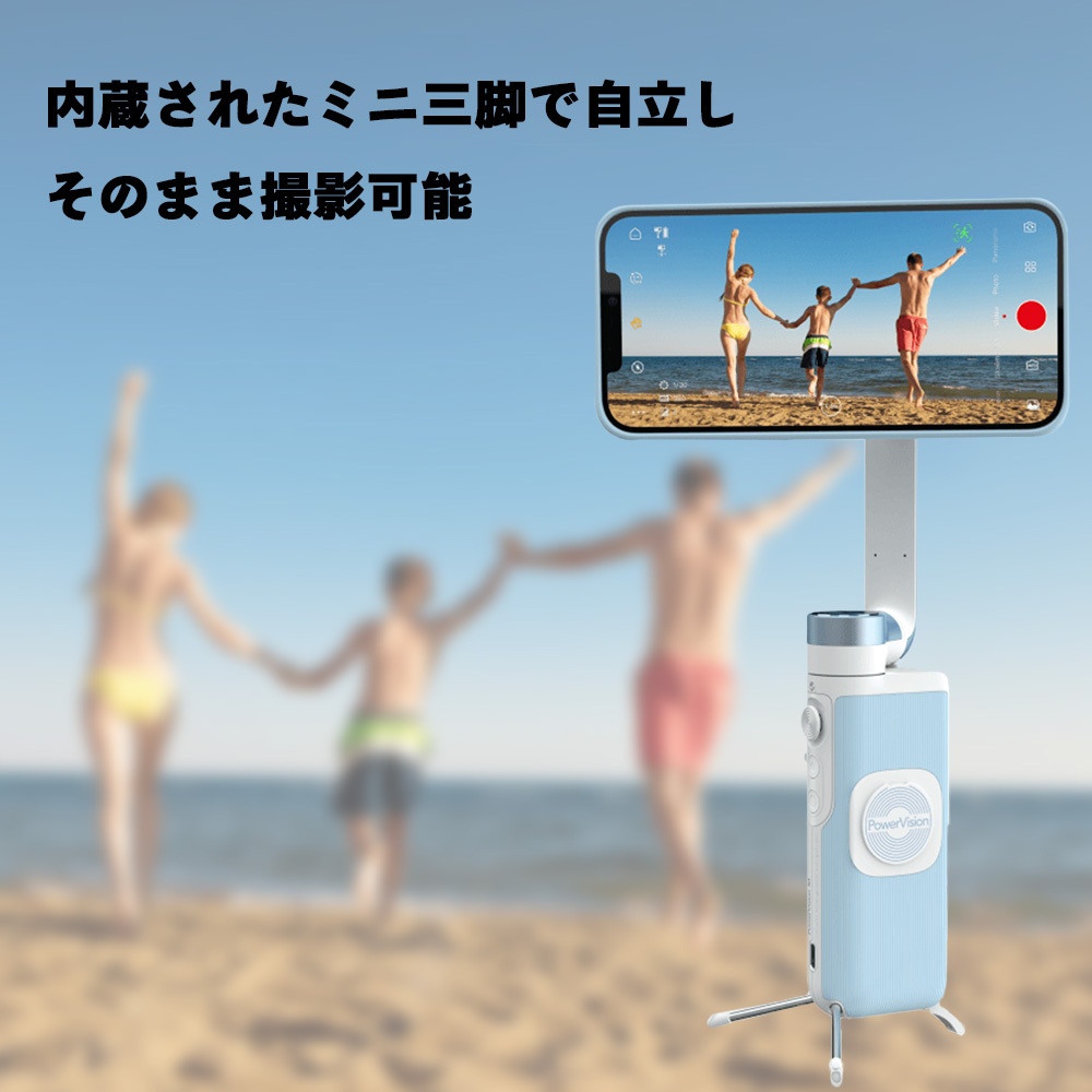 (青) PowerVision S1 スマホジンバル スタビライザー スマホホルダー スタンド付 パワーヴィジョン! モバイルバッテリー 自撮り 撮影 S1