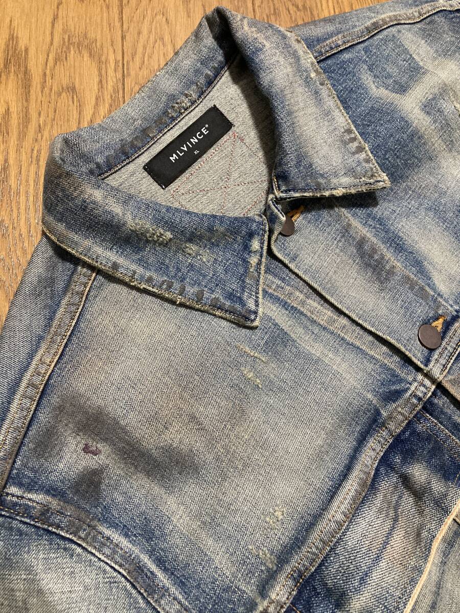 美品☆XL [MLVINCE] 22SS 定価79,200 SELVAGE DENIM INDIGO ヴィンテージ加工 セルビッチ インディゴデニムジャケット XL メルヴィンス