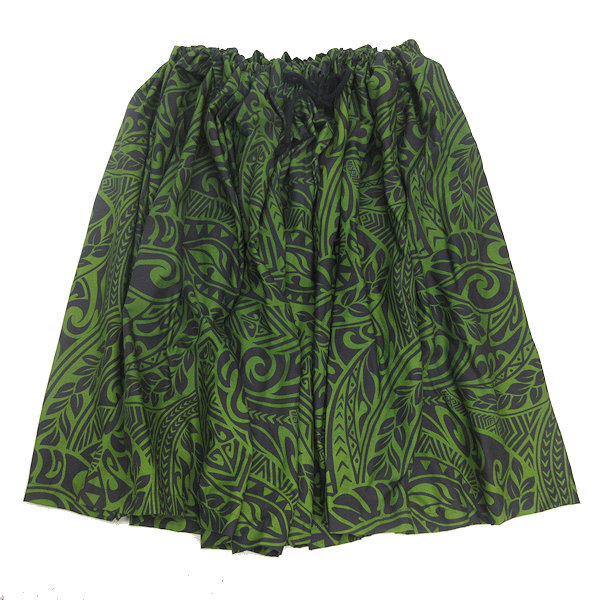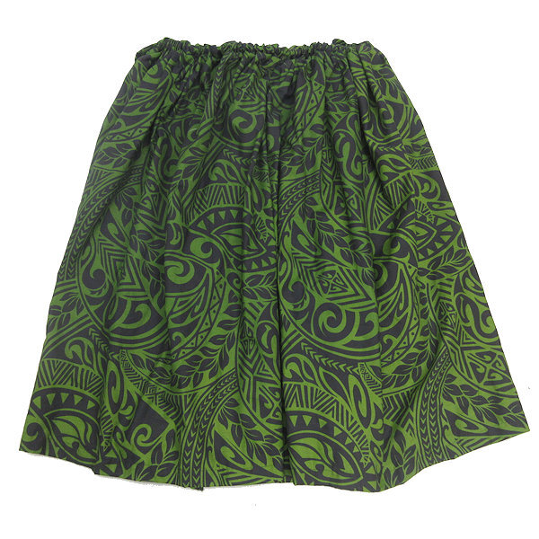 D■フラダンス用■ハンドメイド 総柄パウスカート フリーサイズ ハワイアン■緑/2【中古】