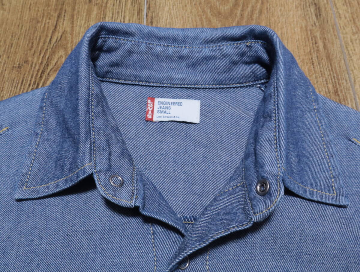 00s■Levi's ENGINEERED JEANS リーバイス エンジニアード 立体裁断 デニム シャツ■メンズ S ブルー 60100-05 日本製■3D ビンテージ