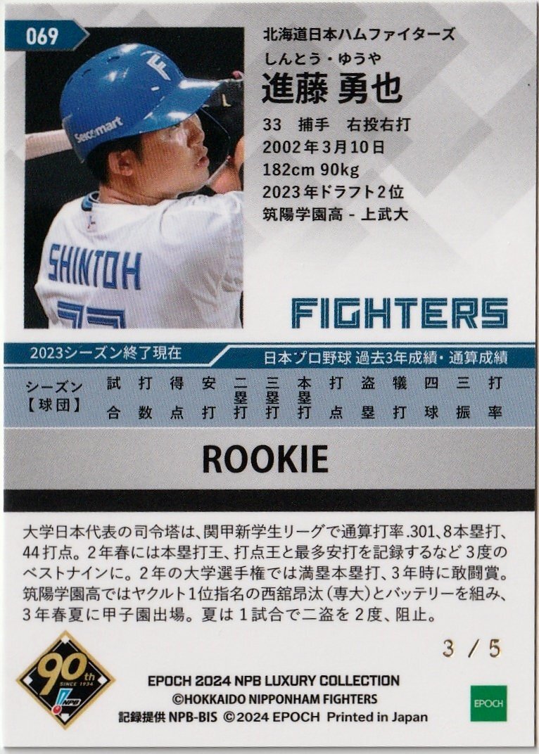 【 069 進藤 勇也 ファイターズ】3/5 レギュラーパラレル(ゴールド)EPOCH 2024 NPB プロ野球カード LUXURY COLLECTION