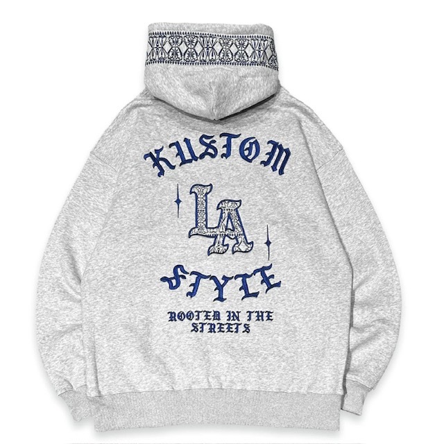 Kustomstyle カスタムスタイル "LA BANDANA" PULLOVER HOODIE 刺繍LOGOパーカー