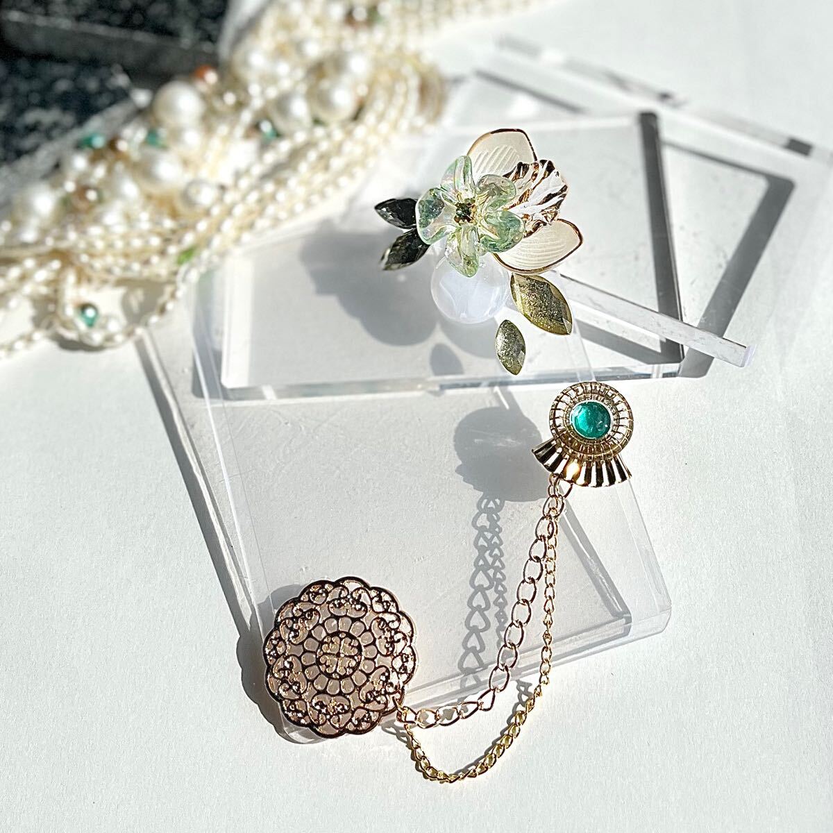 トレカケース トレカケースカバー デコトレカ トレカデコ トレカケースデコB8 ゴールド ストーンデコ ラインストーン ビジュー パール カボション パーツ ホワイト フラワー 花 木蓮 モクレン グリーン 緑
