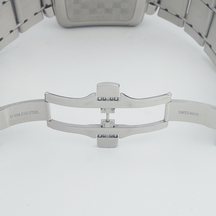 備考:お洒落で涼しげなアイスブルーカラーのビッグフェイスと、厚みのあるスクエアケースが腕元に重厚な存在感を持たせる「スピーディ」クロノグラフ搭載モデルです。ガラスコーティング膜に小スレと一部剥がれがあり、裏蓋に小傷と小スレ、バンドに小傷、バックルに小スレが残っておりますが、こちらは仕上済商品の為、状態の良いお品となっております。