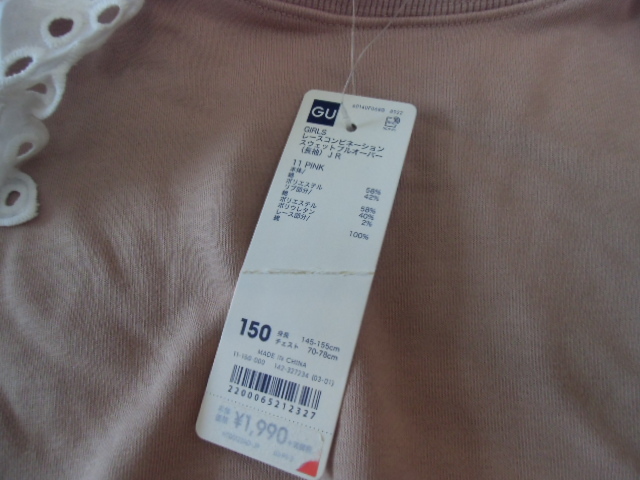 150 GU ピンク肩レーススウェットプルオーバー 新品未使用 タグ付き