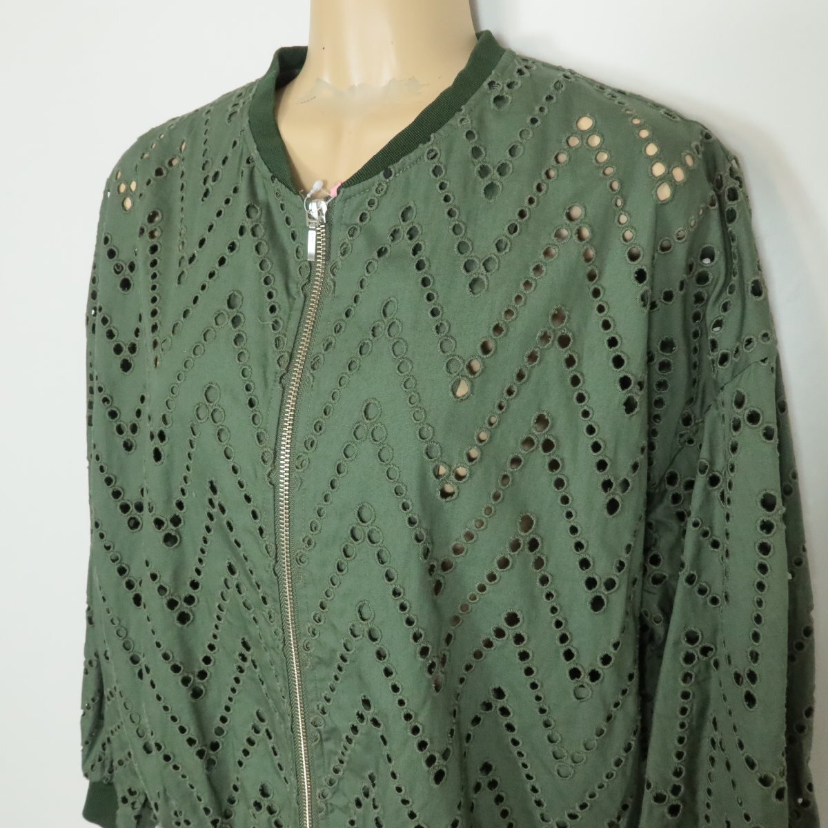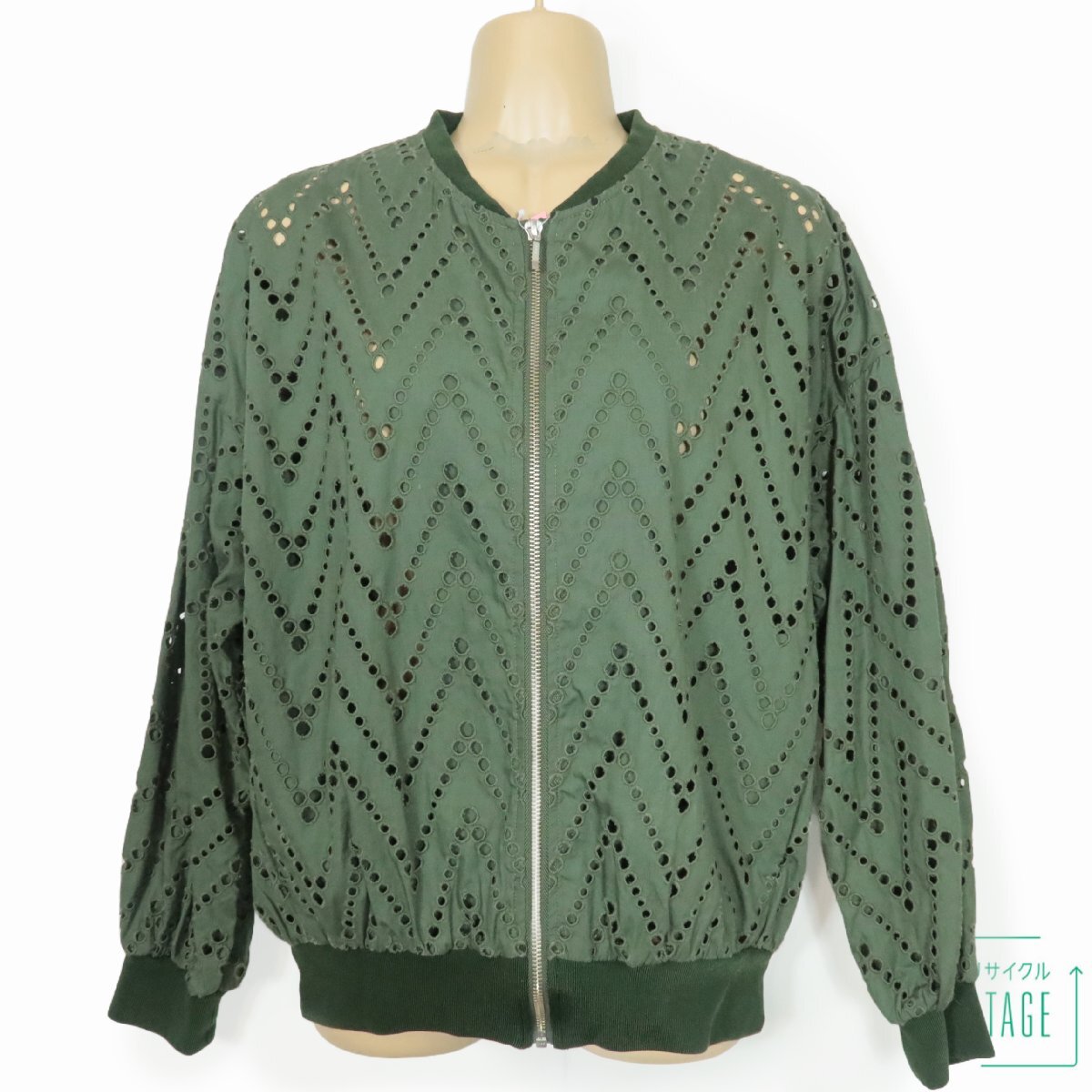インディヴィ★おしゃれ!ジップアップブルゾン パンチングデザインがすてき♪サイズ38 緑系 z10160