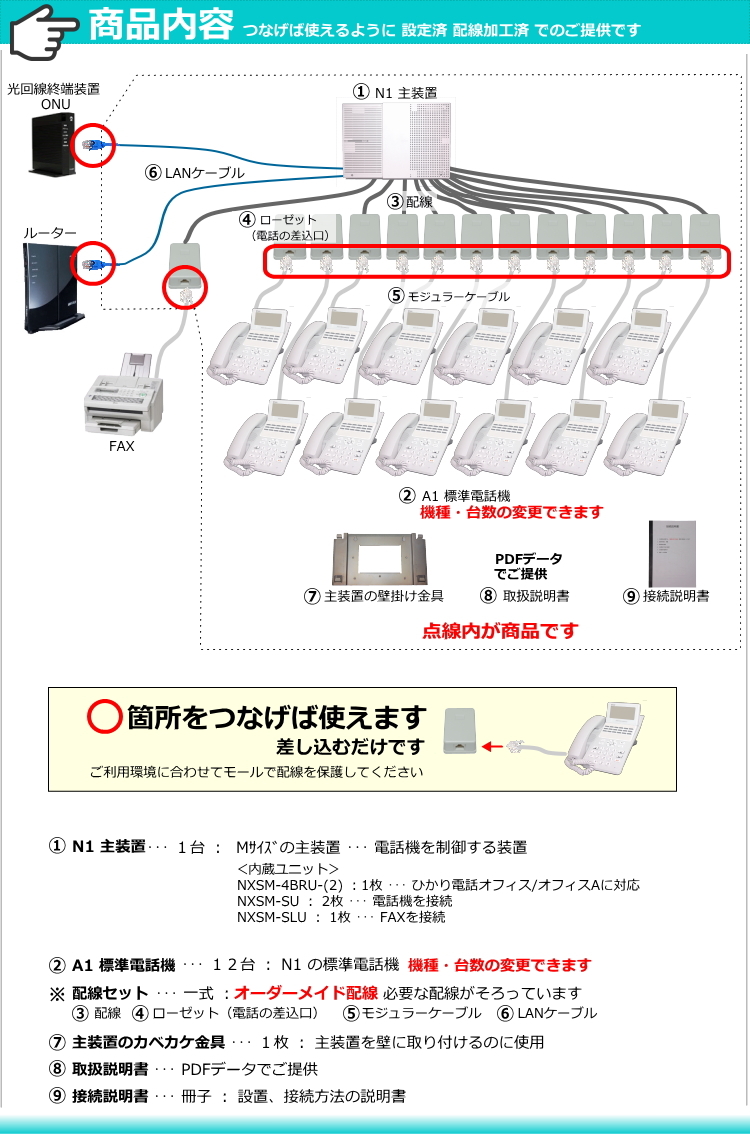 電話機6台セット | 電話機7台セット | 電話機8台セット | 電話機9台セット | ||