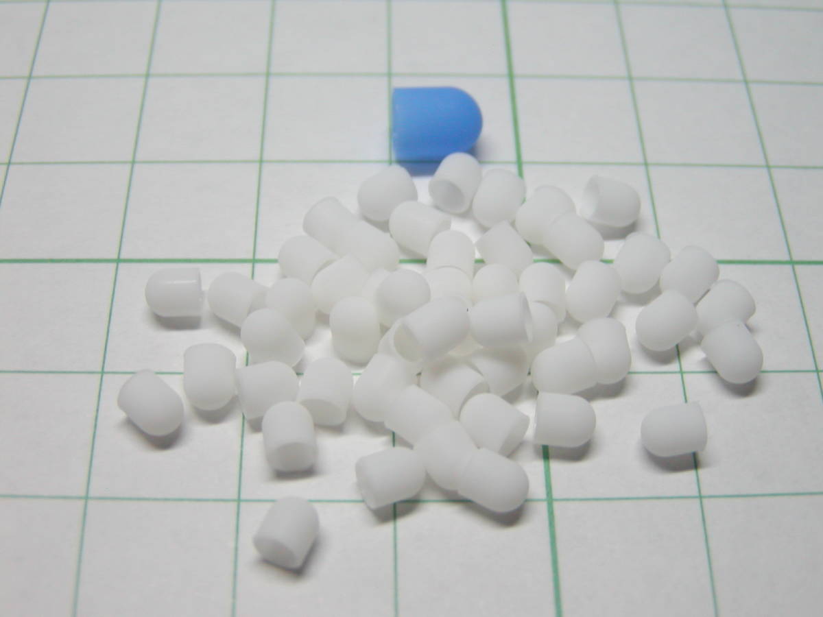 | 【3φ拡散キャップ】 超高輝度LEDは、照射する角度が狭いので、 このLEDキャップをLEDに取り付けると、光が拡散されて横方向にも光が広がります。 ・サイズ: 3φ用 ・ 色 : 白色 ・数 量: 1袋 50個入り ◆写真.2 青色(5φ)は、比較用で含まれません。 | |