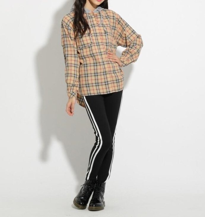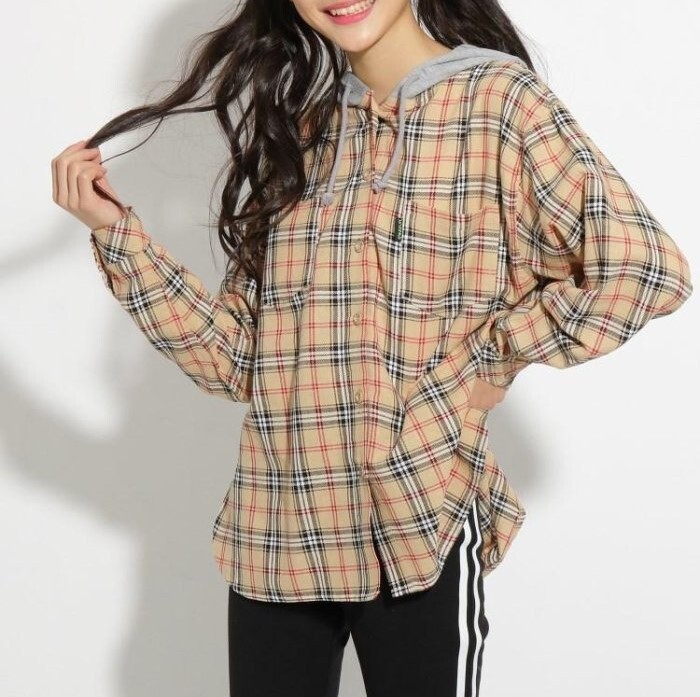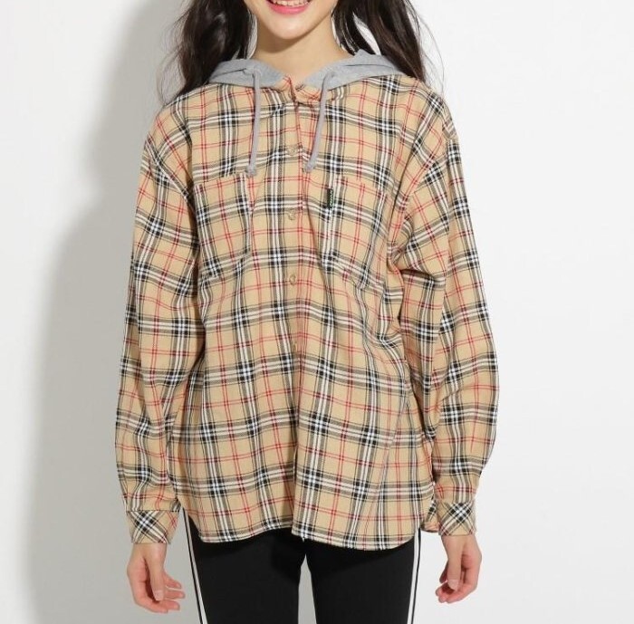 チェックやデニムのシャツに異素材のフードをドッキングさせたインパクト大なデザイン。