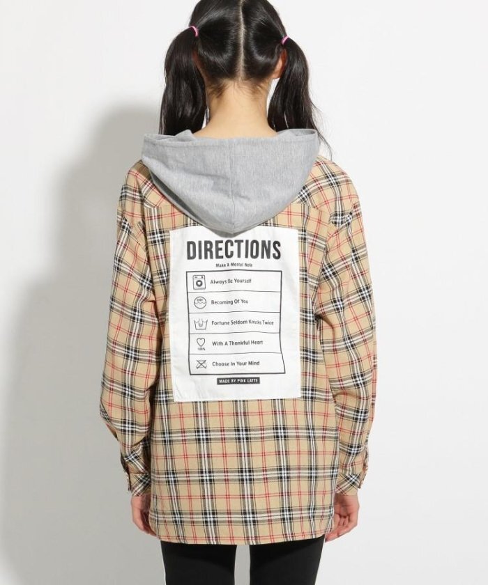 新品 PINK-latte フード付BIG シャツ ベージュ 15(XS150cm) 定価4290円