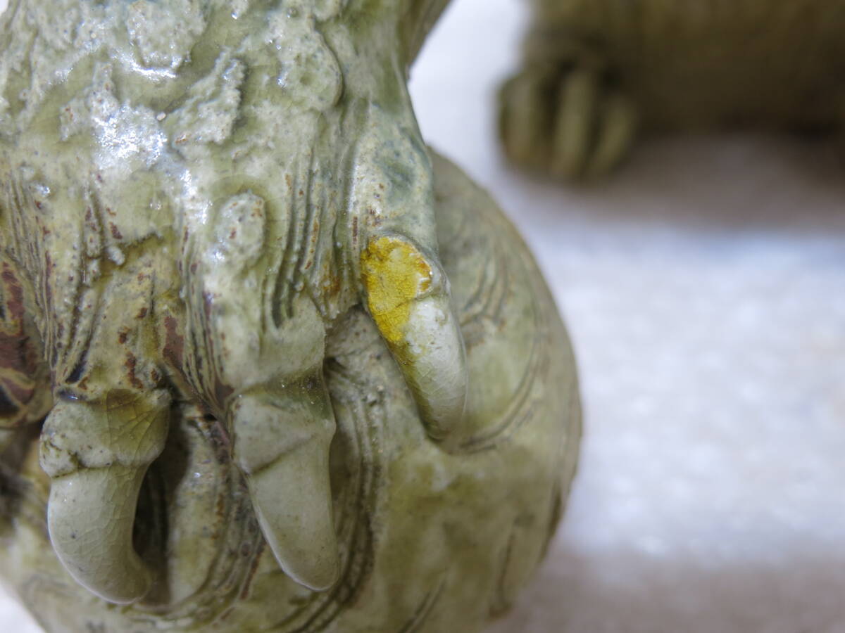 玉の乗せている手のツメ付近の欠け?があります。(画像9枚目)