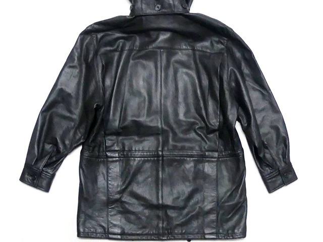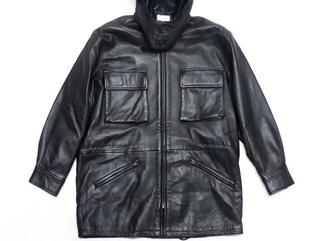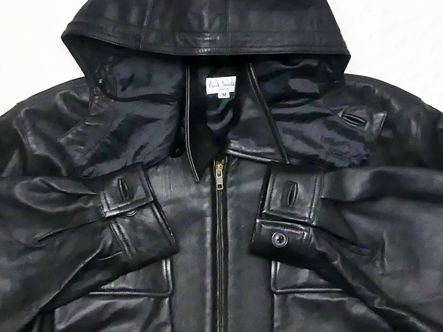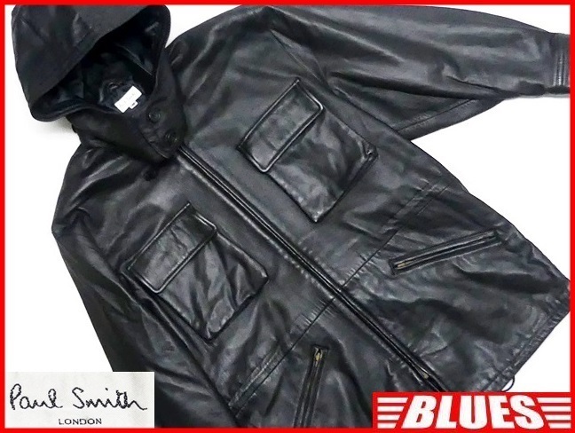 即決★Paul Smith★メンズM レザーモッズコート ポールスミス 黒 ブラック 本革 ジャケット 本皮 ビジネス フード 革ジャン レザーコート
