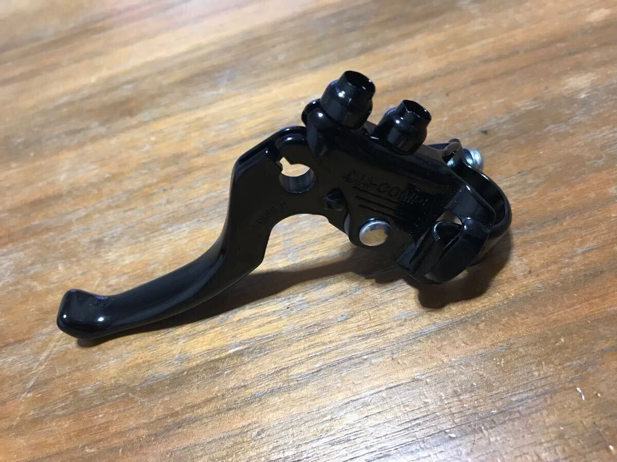 新品のダイアコンペ ブレーキレバーを加工して二本引きにしています