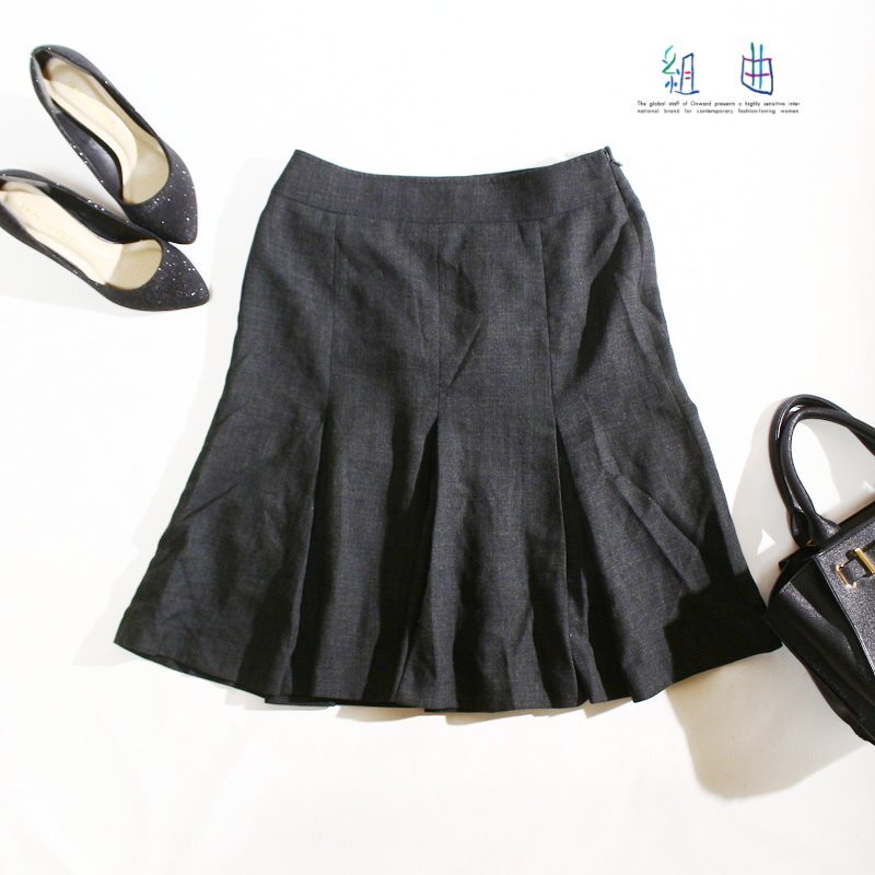 美品 組曲 クミキョク 株) オンワード樫山 秋 冬 ウール混合 スーツ フレアスカート 9号 2 グレー ビジネス フォーマル