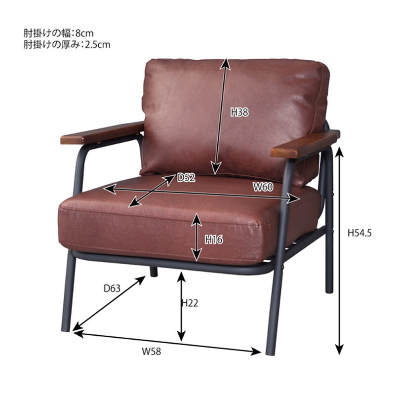 ボイド 1人掛 【ブラウン】 スチール(粉体塗装) ポケットコイル ソフトレザー