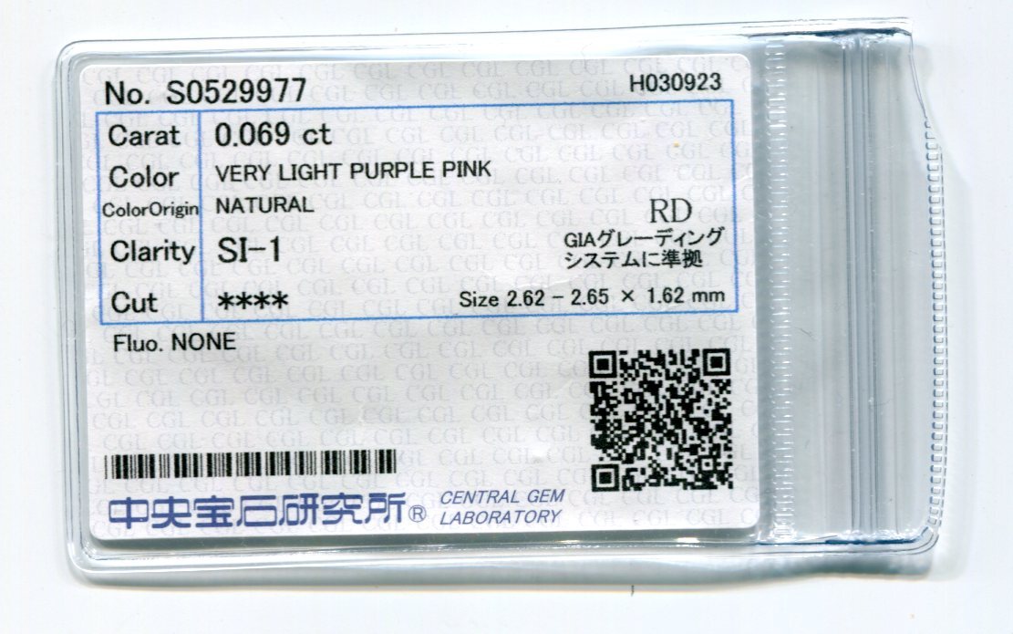 無色のダイヤの隣においてみるとややピンクかかっているかなというぐらい薄いです