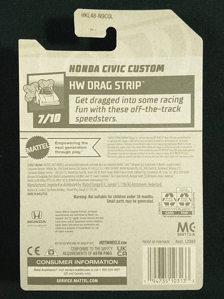 ★ホットウィール★国内販売なし Kroger Exclusive HONDA CIVIC CUSTOM クローガー限定 ホンダ シビック カスタム HotWheels しわあり③