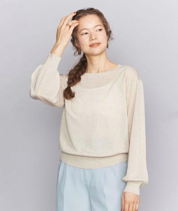 清涼感のあるシアーな素材に控え目なパフスリーブが女性らしさを引き立てます。
