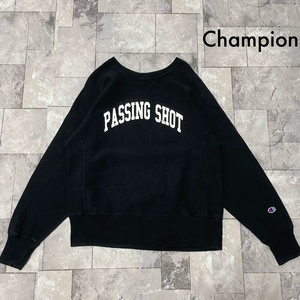 Champion チャンピオン REVERSE WEAVE リバースウィーブ sweat スウェット トレーナー 復刻 単色タグ Vガゼット プリントロゴ ブラック サイズM 玉FL3725