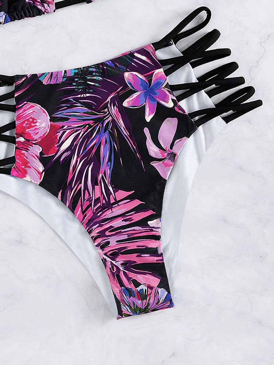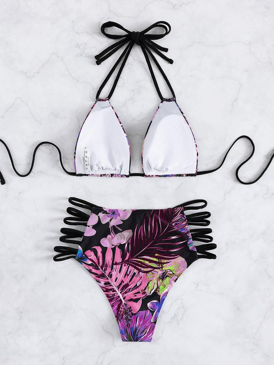 レディース 水着 ビキニセット ビーチ ランダムトロピカルプリント ハイウエスト クロスホルタービキニセット