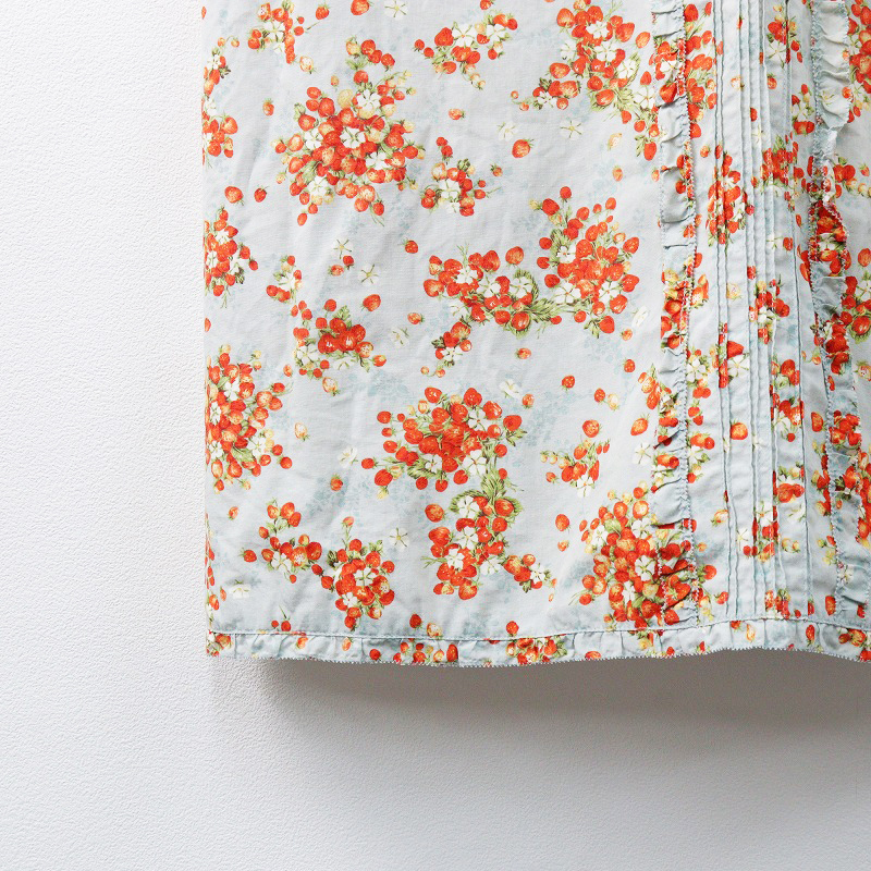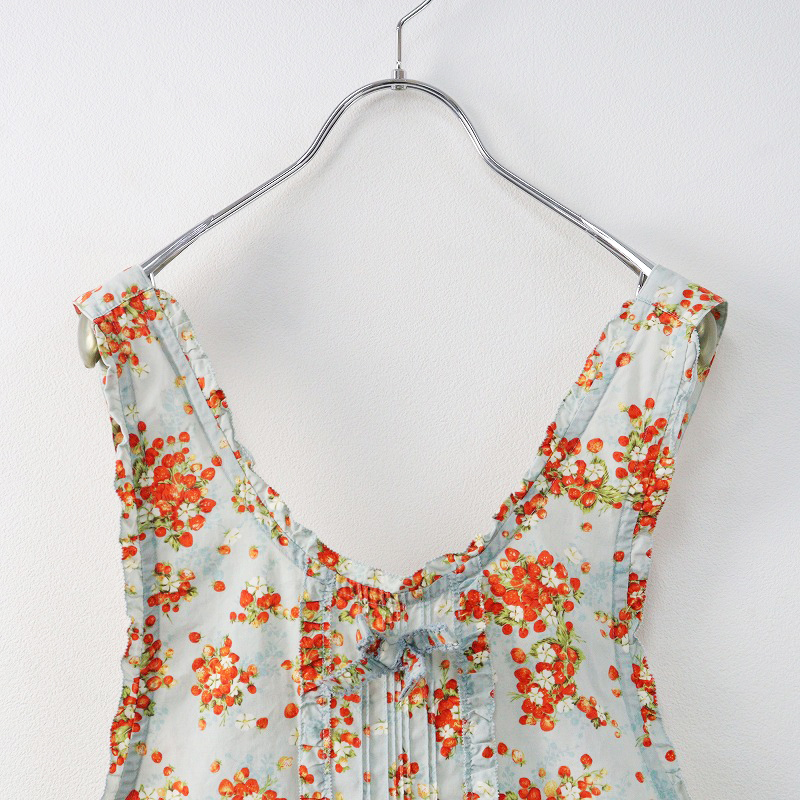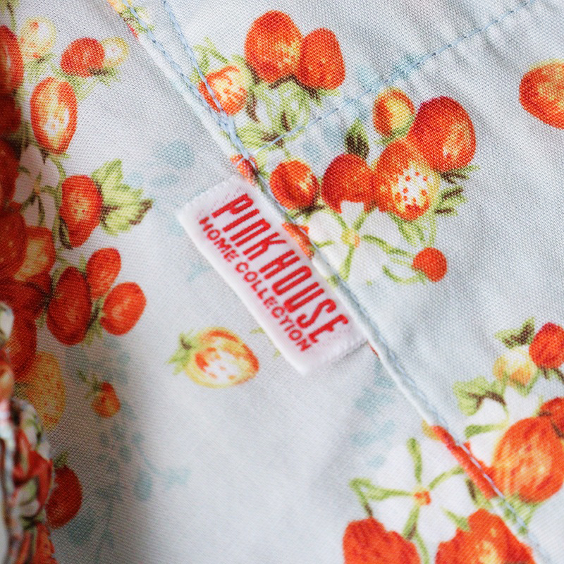 ピンクハウス PINK HOUSE ストロベリープリント エプロン/サックス ピコフリル ピンタック キッチン リボン【2400014085921】