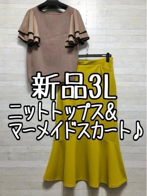 新品☆3L♪大人おしゃれ♪フレア袖ニット&マーメイドフレアスカート☆p216