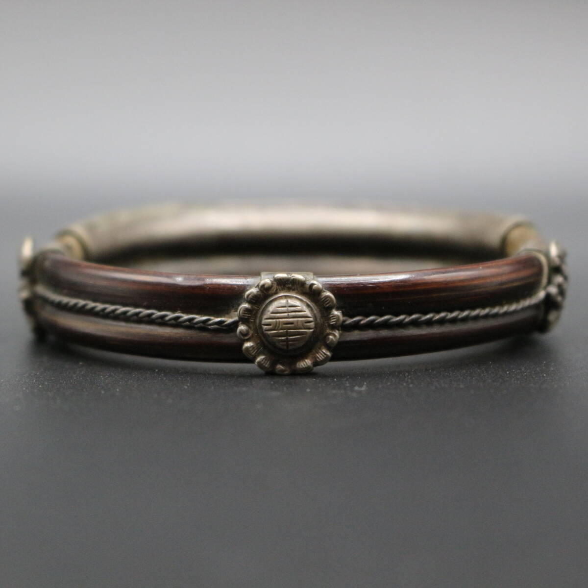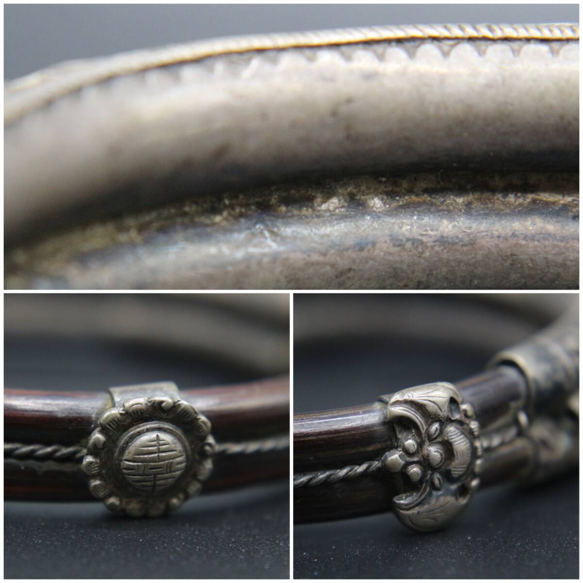 中国 / バングル / 古い / シルバー / ウッド / 銀製 / アクセサリー / ブレスレット / 彫刻 / アンティーク / 古美術 / 唐物 / 中国美術 でございます。